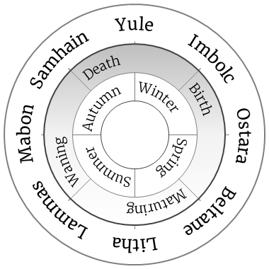 The sabbats are the festive events celebrating the cycle of the sun. Intended to be filled with merriment and joy, these days acknowledge the turning of the Wheel of the Year. During these celebrations, our connections to Orb and Sky are strongest, serving as gateways to outwardly unite our powers with those of Nature.