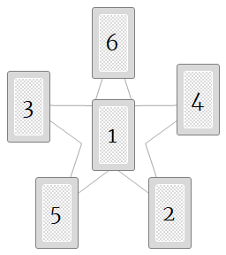 The Pentagram spread is ideal for looking into a querent’s state of being relative to the dominant aspect of each element of Nature. While drawing and reading cards for this layout, keep in mind whether the querent is seeking insight into what is being expressed outward to Nature or what is being received inward from Nature.